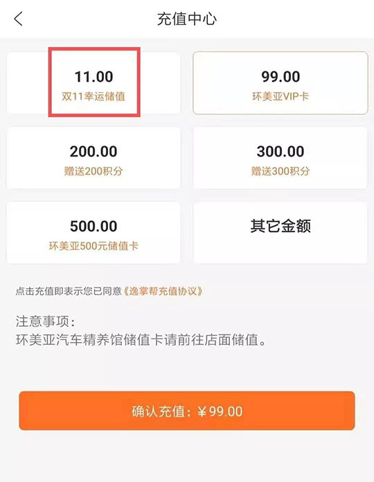 3、凡參與活動(dòng)充值未中獎的用戶(hù)即可到環(huán)美亞門(mén)店進(jìn)行優(yōu)惠洗車(chē)1次(選擇到店洗車(chē)有效期15),如不選擇洗車(chē)可加價(jià)選擇店內其他服務(wù)項目。