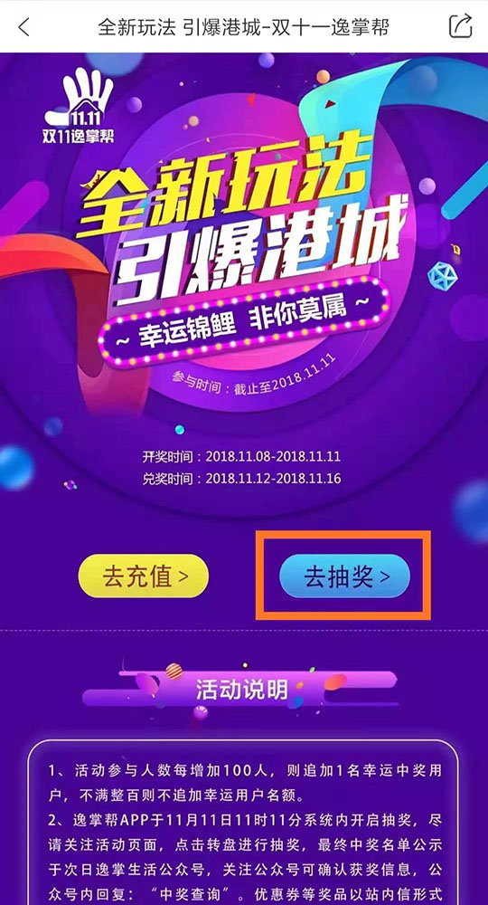 5、充值完成,返回內頁(yè),選擇去抽獎,參與抽獎成功!
