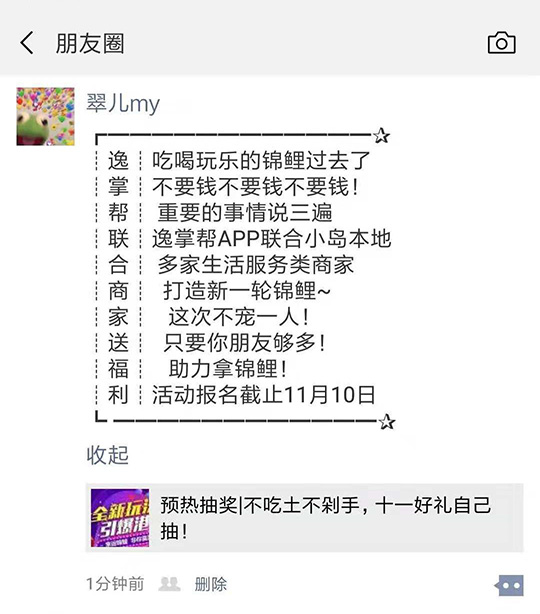 朋友圈轉發(fā)推文,再贈送門(mén)店抽獎1次