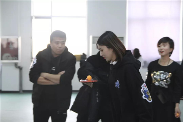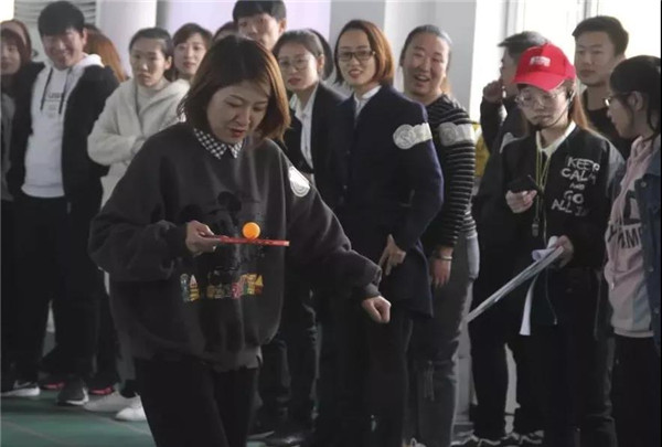 在比賽中隊友們相互鼓勵,相互配合。乒乓球接力不僅考驗隊員的速度、耐心,更考驗著(zhù)隊員們團結協(xié)作的能力,以及彼此的默契程度?,F場(chǎng)游戲活動(dòng)中,比賽氣氛和諧快樂(lè ),大家都被簡(jiǎn)單的互動(dòng)游戲所感染,一陣陣吶喊助威聲從運動(dòng)場(chǎng)上傳來(lái)。