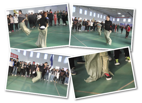 此次“袋鼠跳”全程往返為20米,以麻袋為道具。比賽規則是,隊員們排好隊,站在起跑線(xiàn)上,聽(tīng)到發(fā)令后,進(jìn)入麻袋,并向前跳躍,然后到了折返點(diǎn)后再跳回來(lái),第二人接力,以此類(lèi)推,直至4人全部完成,用時(shí)最短隊伍名次列前。