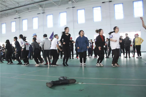 “歡樂(lè )袋鼠跳”比賽過(guò)后,緊接著(zhù)來(lái)到了團體跳繩的比拼中。團體跳繩既要求搖繩隊員的搖繩技巧和節奏控制,又要求跳繩隊員的體力、耐力和反應力,更重要的是大家的配合無(wú)間,對團隊精神要求甚高。