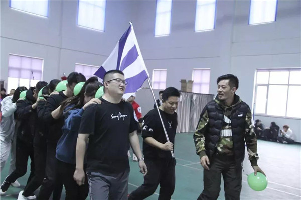 看我們心連心,連著(zhù)一起向前走。本游戲要求裁判宣布開(kāi)始后,6名隊員首先吹氣球,并將氣球系好;將系好的氣球放于2人之間并用額頭頂住進(jìn)行前進(jìn),期間有氣球掉落則重新開(kāi)始;隊伍行進(jìn)距離50米,直至最后一個(gè)人穿過(guò)終點(diǎn)線(xiàn),用時(shí)最少名次越前。通過(guò)本游戲來(lái)培養大家的團隊精神,提高隊員們配合、協(xié)作的能力。