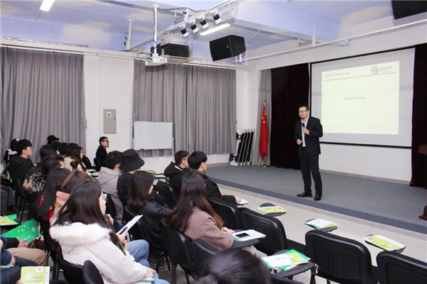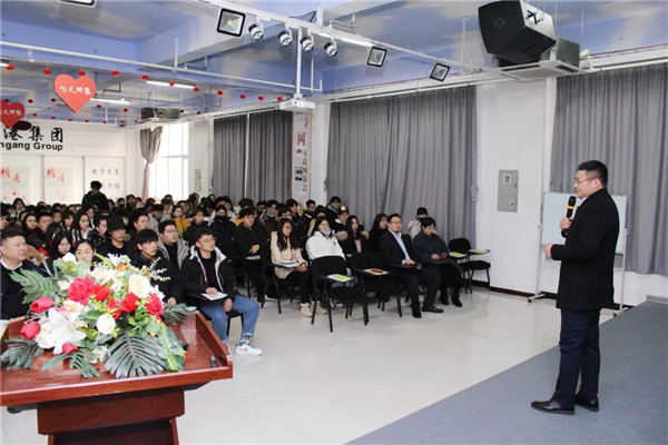 乾港集團美博士環(huán)??偨?jīng)理常凱???,為在座的師生們解讀了大綠色環(huán)保家居、室內污染物治理技術(shù)、方式方法及產(chǎn)品介紹等相關(guān)空凈治理知識;秦皇島新型材料科技有限公司總經(jīng)理李勇劍李總則為在座師生帶來(lái)了綠色材料研發(fā)及生產(chǎn)使用工藝等內墻環(huán)保壁材方面的知識。
