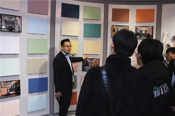 參觀(guān)完總部后,在解說(shuō)員的帶領(lǐng)下,河北環(huán)境工程學(xué)院一行人來(lái)到了我公司品牌體驗展示中心。對于我司相關(guān)環(huán)保產(chǎn)品大家都還比較陌生,常凱???、李勇劍李總分別對室內污染物治理展廳、企業(yè)綠色裝飾材料展廳進(jìn)行了細致介紹,讓大家對凈化原理及環(huán)保材料等有了一個(gè)全新的認識!