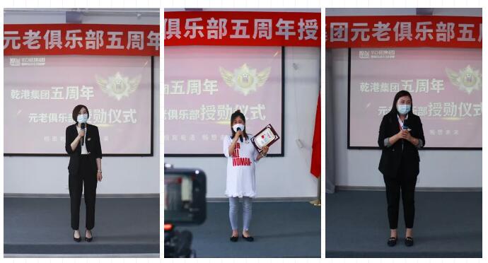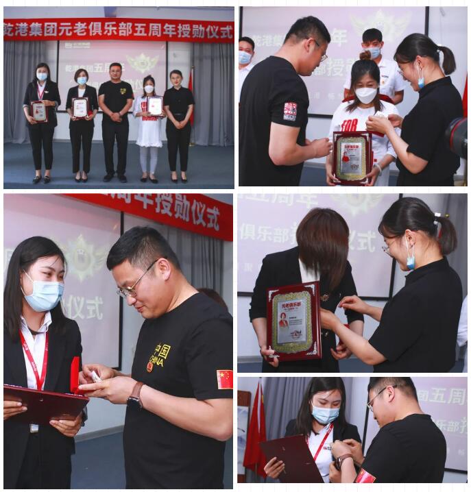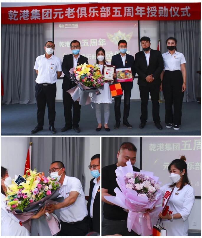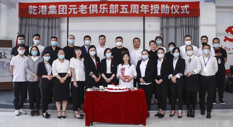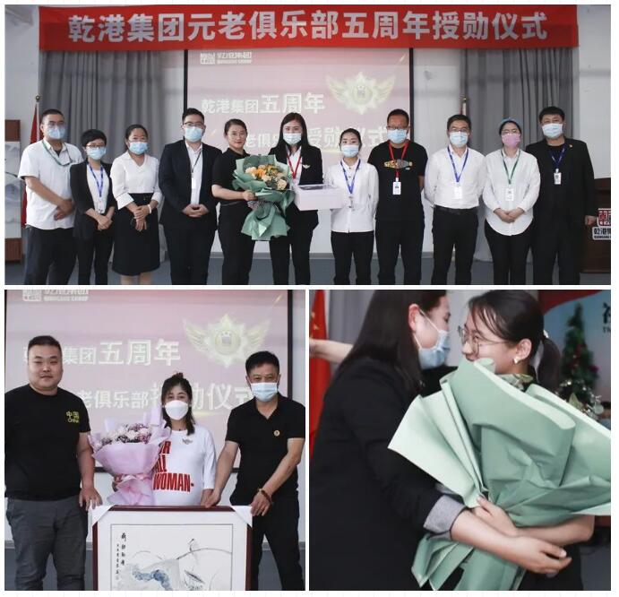 2020年5月28日,乾港集團元老俱樂(lè )部五周年授勛儀式隆重召開(kāi),乾港集團對3位工齡超過(guò)5年以上的老員工授予榮譽(yù)勛章,感謝元老們在乾港集團發(fā)展中做出的貢獻。