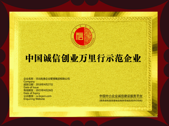 中國誠信創(chuàng )業(yè)萬(wàn)里行示范企業(yè)